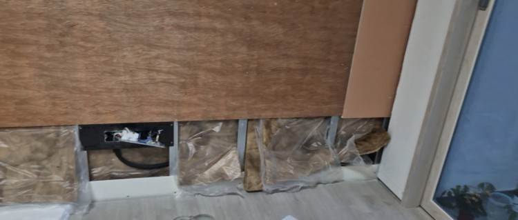 누수 피해로 집안 벽체 탈거후 건조 중에 있습니다