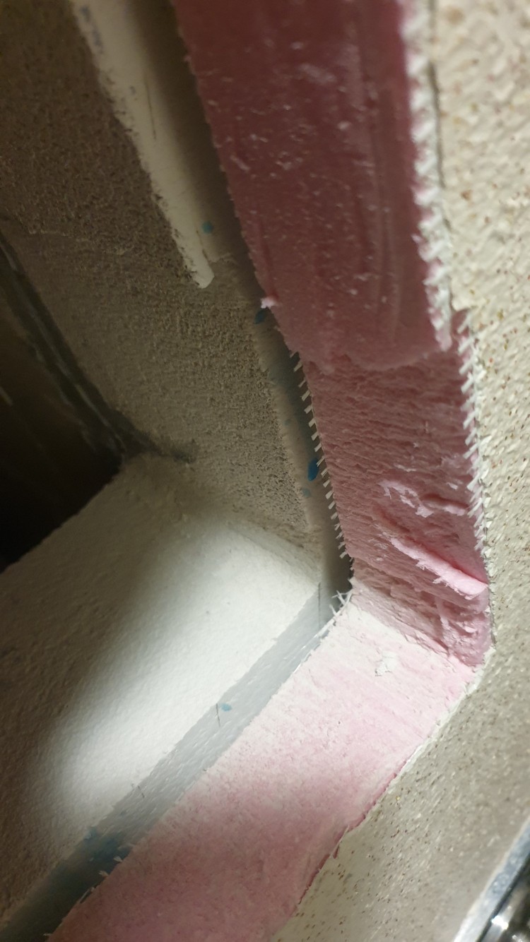 악취 문제로 세탁실 벽체(공용비트) 일부를 타공한 상태입니다. 원상복구 하려는 과정에서 석보보드가 없다는걸 알게 되었습니다. 첨부 사진과 같이 세탁실 벽체 시공이 ALC블럭과 아이스핑크단열재에 메쉬그물망을 붙여 탄성코트로 시공되어 있어요. (석고보드 누락)
