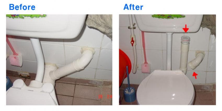 미니벤트를 설치해서 해결은 가능하지만, 문제는 오수관이 콘크리트 속에 매립된 상태인 것으로 보여서... 매립된 배관을 찾아서 콘크리트를 깨 낸 후에 설치가 되어야 하는데, 그게 현실적으로 실행은 꽤 어려울 것 같습니다.