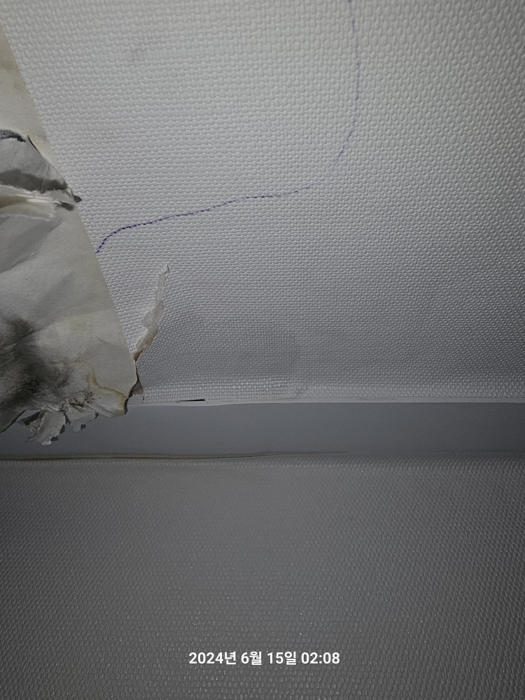 작년8월에 화장실 앞 천장에 물이 나와 곰팡이가 슬었습니다.