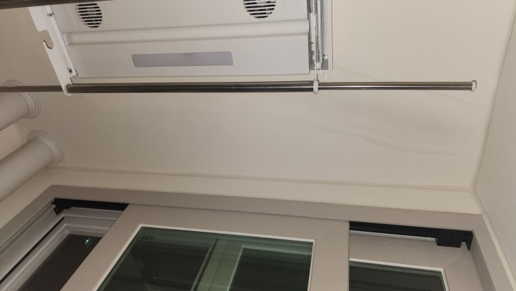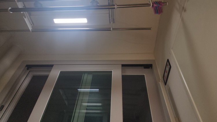 빨래건조대 설치위치에서 뻗어나오는것처럼 보이기도하고 반대로 빨래건조대 설치위치에서 끝나는것 같아 보이기도 합니다.