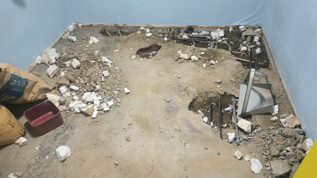 최근에 아랫집 누수가 발생해서, 동네 설비업자가 와서 장판 들어보고, 물고인 이곳저곳에 구멍을 내놨습니다. (께면서 옆에서 보니깐, <세맨&자갈돌-배관-스티로폼>이렇게 되어 있더라구요. )![]()