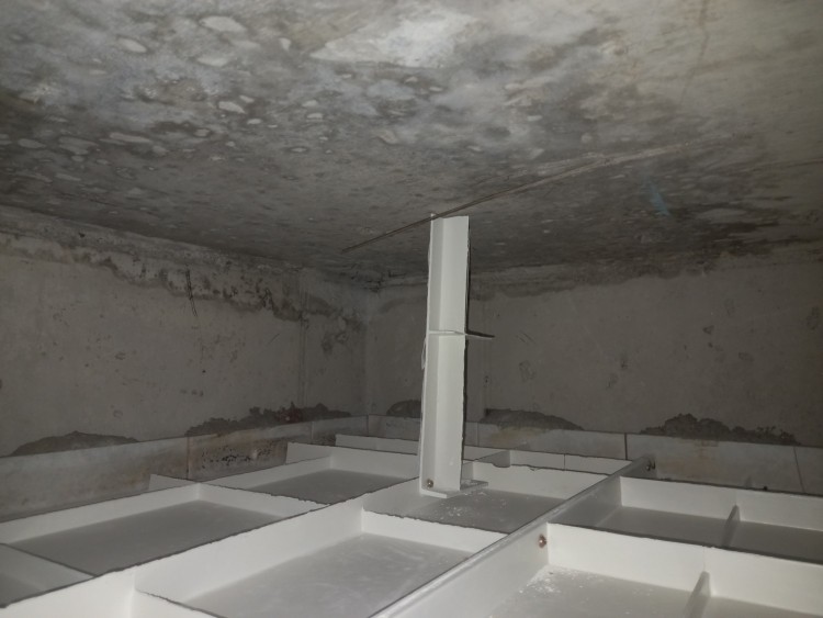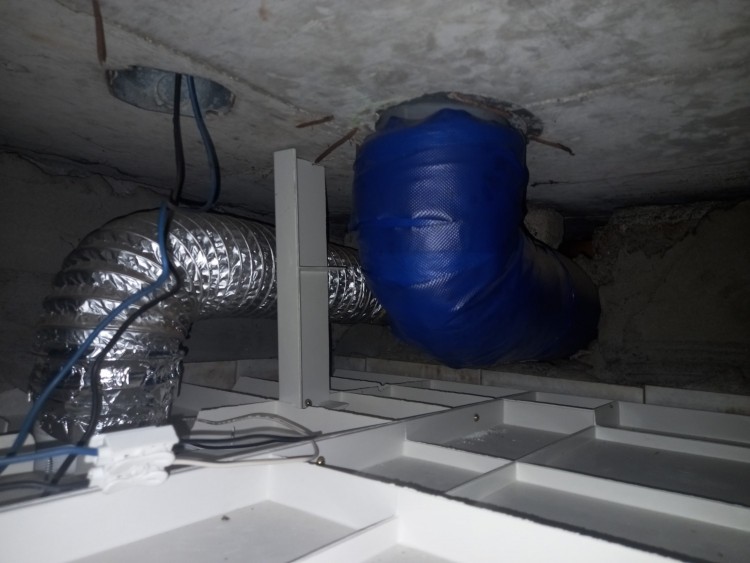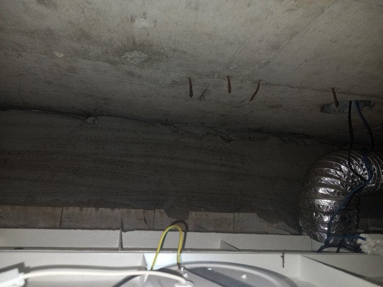 화장실에 천장에서 매캐한 시멘트 냄새와 바람이 느껴집니다.