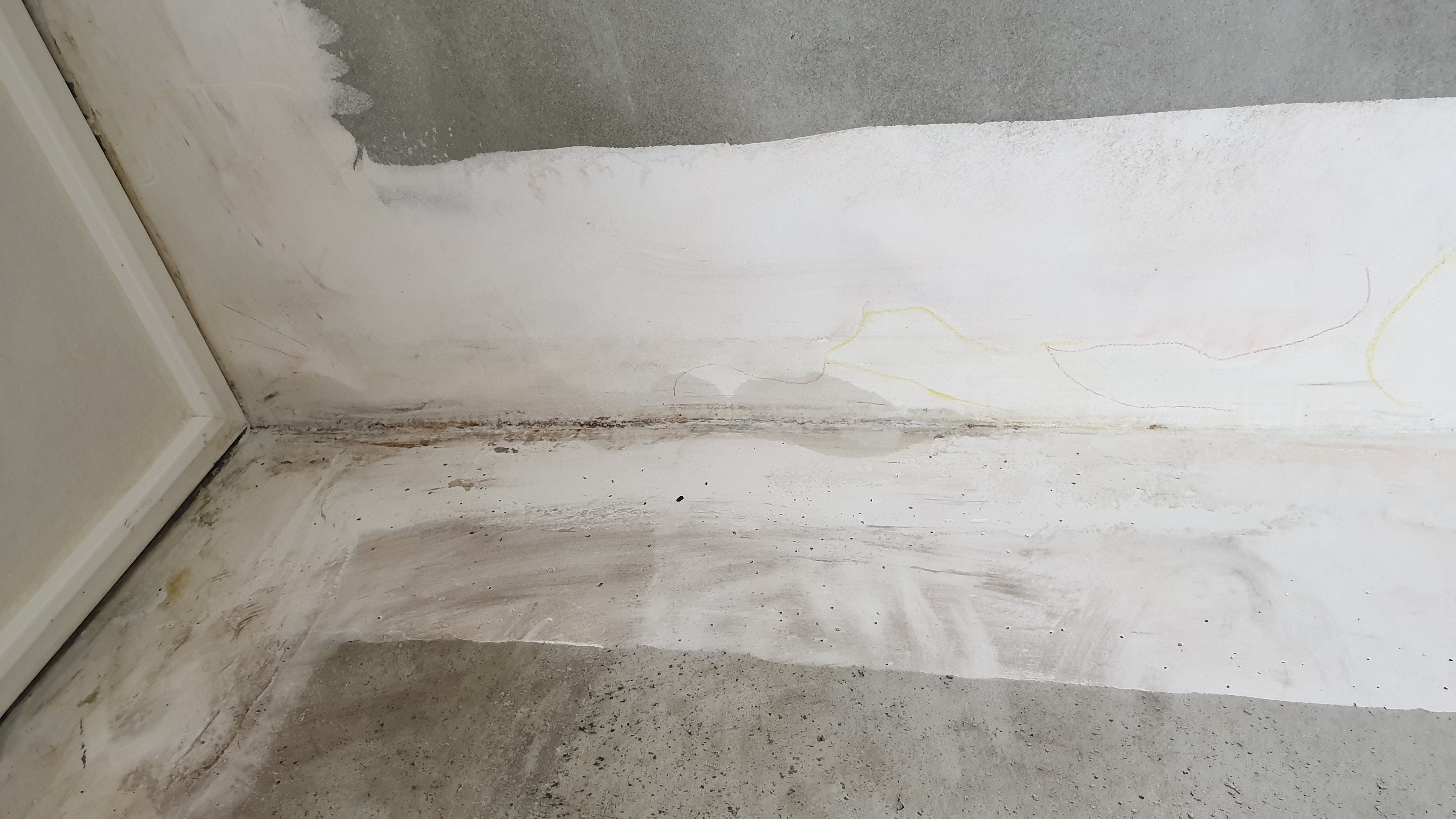 이게 누수후 콘크리트 벽이 머금고 있던 잔수가 다시 표면으로 나온 걸까요? 잔수가 마르다가 이렇게 다시 표면으로 나올 수 있는건가요? 벽지를 뜯은 콘크리트 벽이라 누수가 잡힌게 아니라면 벽이 훨씬 빨리 넓게 젖는게 보였을 것 같은데 아주 살짝 모서리부분으로 젖어 있어서 잔수가 다시 나온 건지 누수가 아직 진행중인건지 애매합니다.