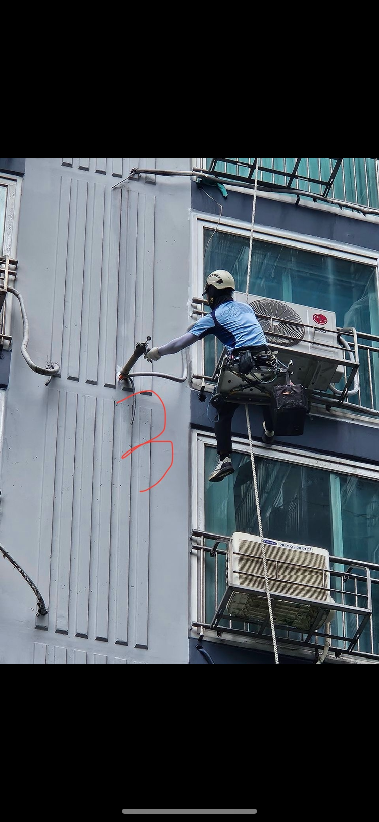 그리고 에어컨이 외벽을 관통한 부위의 사진도 한장 부탁드리겠습니다.