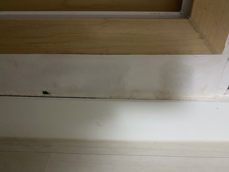 이사오고 몇달 괜찮다가 올해 장마철부터 거실 샷시 하단 벽지랑 걸레받이 부분이 젖는걸 발견했습니다