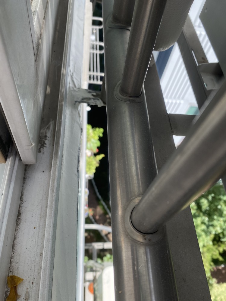 1. 창틀의 외부 쪽에 빗물이 나가는 물구멍이 실리콘으로 막혀 있는 것 같은데요. 한번 확인 부탁드립니다.