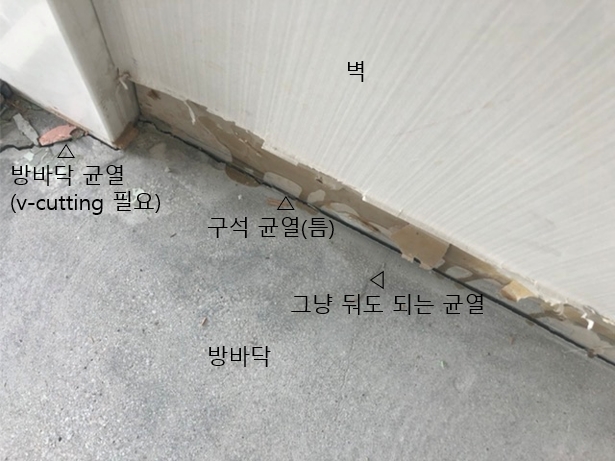 꼭 v커팅을 해야될까요? 현재 바닥과 벽사이에 발생한 크랙인데 v커팅이 꼭 해야되는지?
