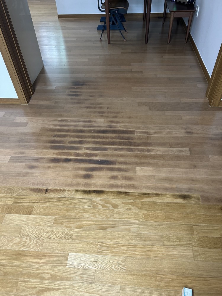 바닥누수도 아니라고 하셔서 주인분께서 보일러를 켜서 말려보자 하셨고 보일러를 일주일 정도 트니 주방까지 확장되고 있습니다