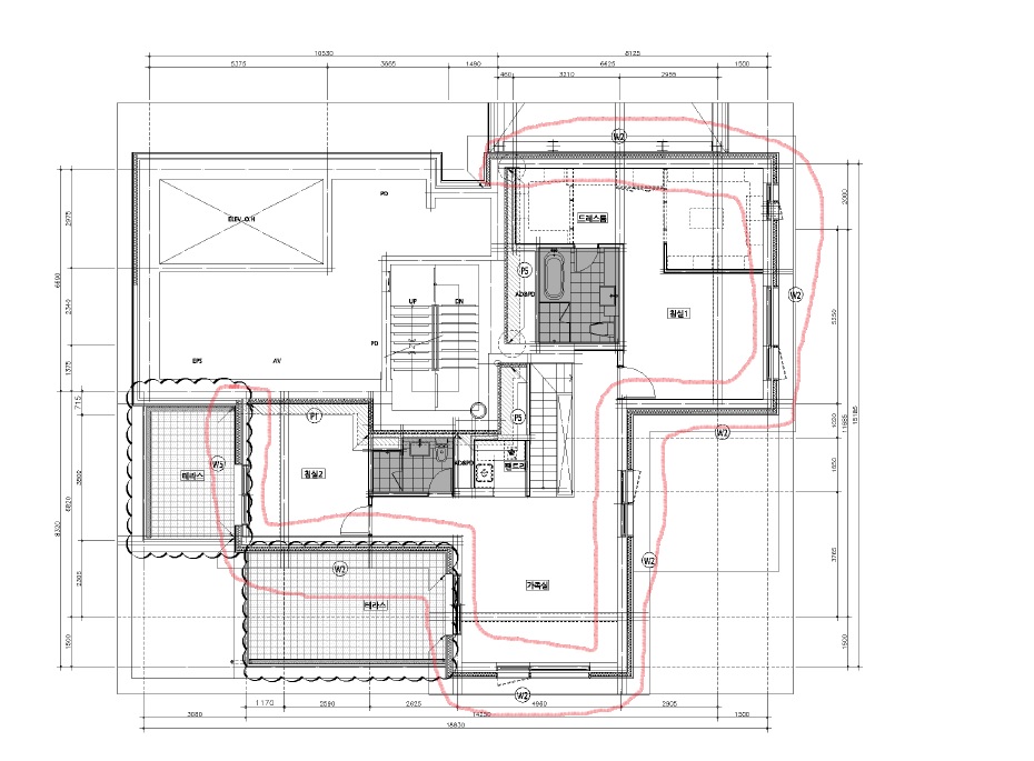 도면에서 P1~P5 까지 표시된 부분이 결로방지단열재입니다.