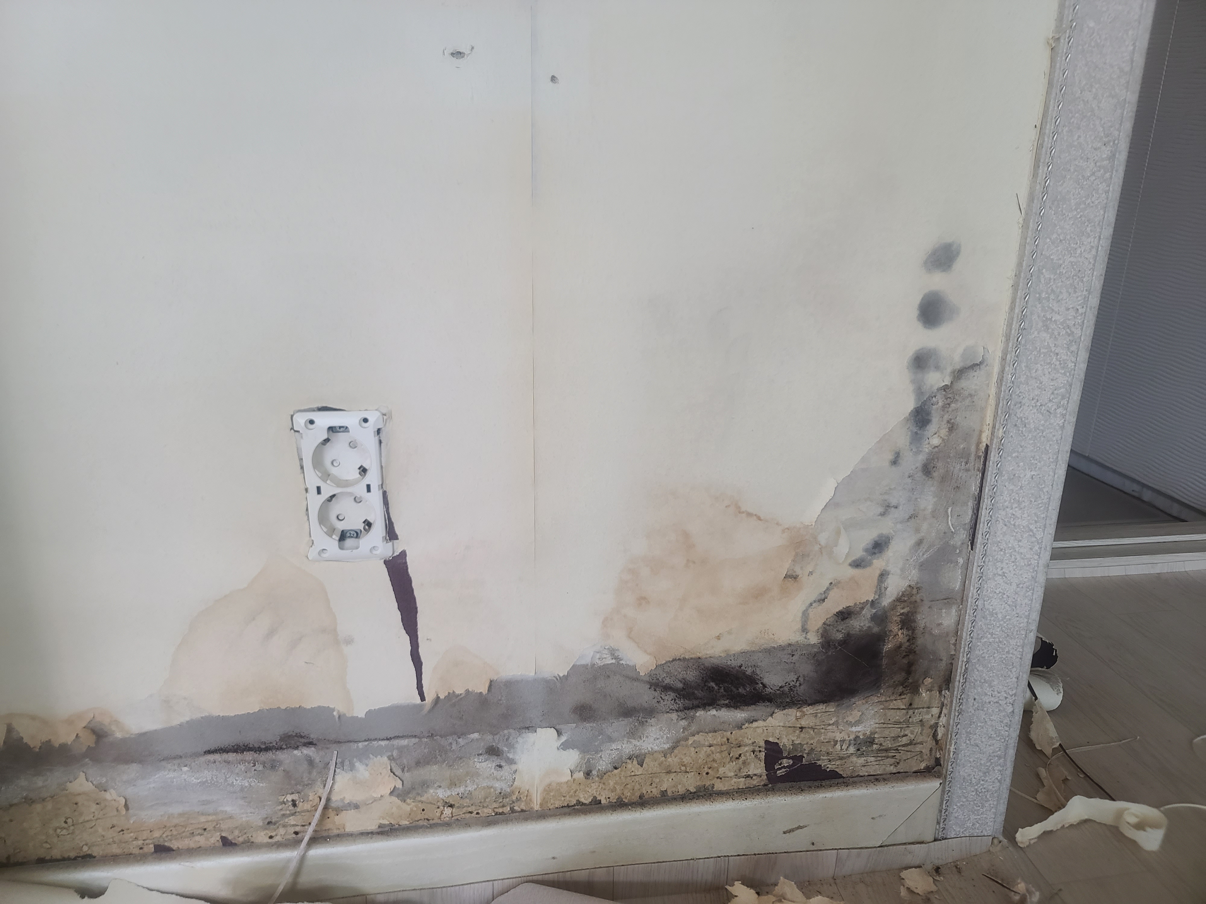 싱크대옆 벽이 벽지하려고뜯어 보니곰방 친구들이있네요현관하구도그벽이가깝습니다. 기존벽지가 젖어있던 상태에서 마른거같습니ㄷㄱㆍ