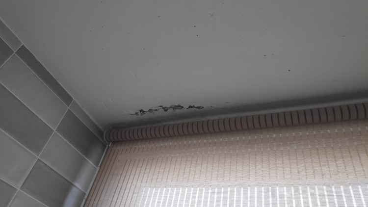 즉 누수는 실리콘이 수명을 다한 것이 아니라, 콘크리트와 도장면(페인트) 사이로 들어간 물이 실내로 넘어온 탓입니다. (그게 누수량의 100%는 아니겠지만 대부분입니다.) 베란다 천장 역시 이 틈으로 들어간 물이 장기적으로 몰탈미장과 도장을 한꺼번에 박리시킨 결과입니다.