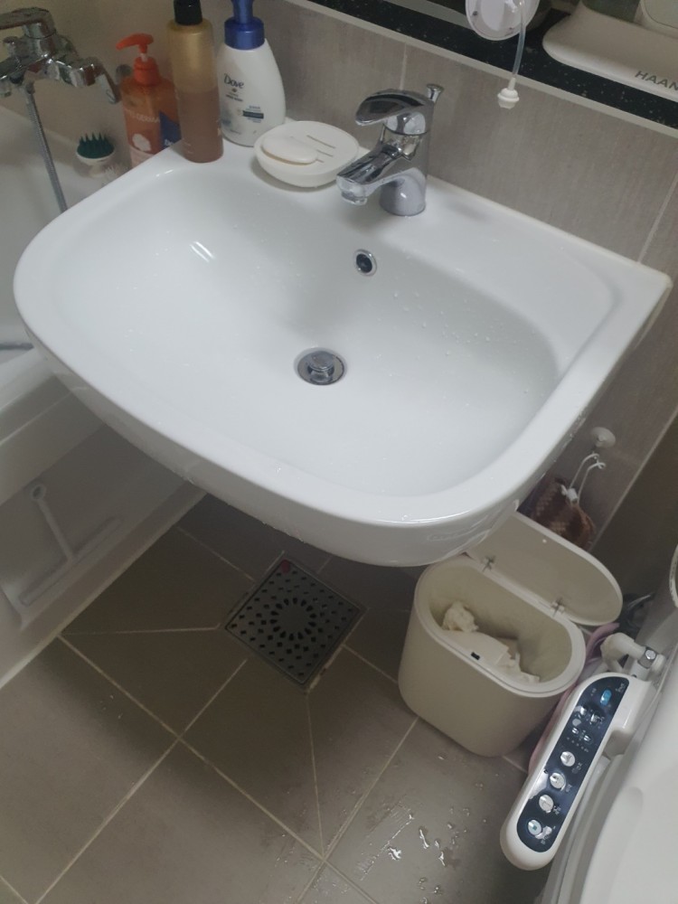 세면대 아래의 배관이 보이는 사진을 한장 부탁드립니다.