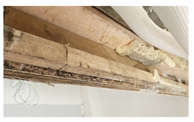 (거실 확장부 3.5~4m 중 1.5~2m 정도 집중적으로 곰팡이 및 목재에 습기 존재)