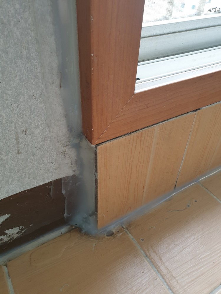 비올때 비가 베란다로 엄청 들어와서 샷시 실리콘 코깅 작업은 2주전쯤 했습니다