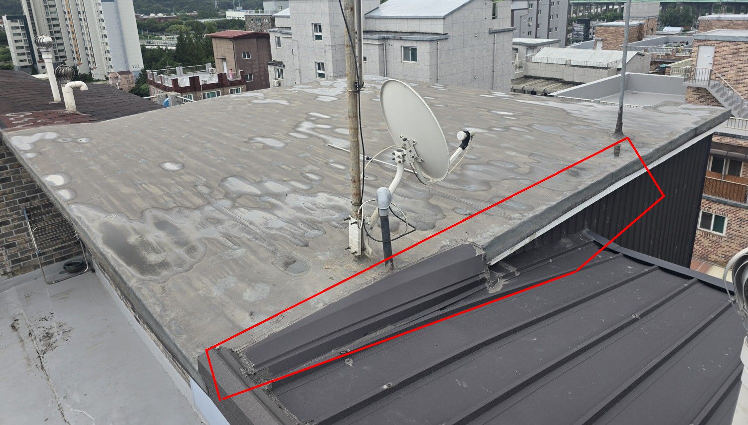 그런 후에 누수가 잡히면 그 때 평지붕을 덮던가 해도 늦지 않을 것 같습니다.