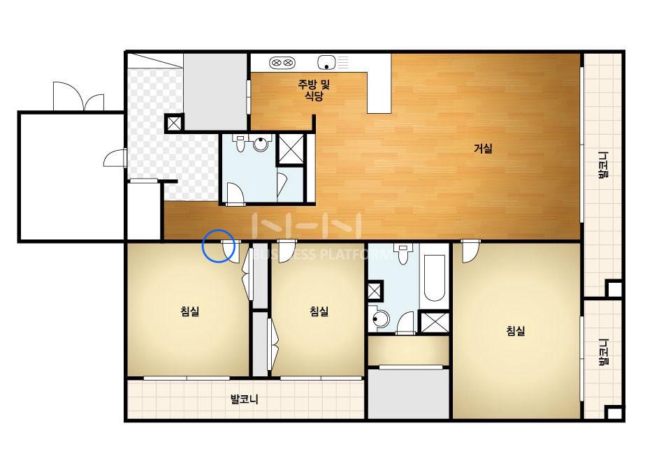 포털에 올라와 있는 아파트 평면도를 하나 찾으셔서 누수 지점을 표시해서 올려 주시겠습니까?