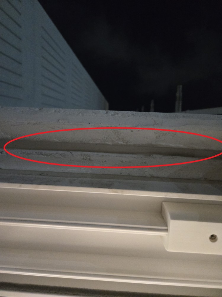 하지만 관리실에선 샷시에 붙은 외벽은 전용부분으로 세대가 관리 보수를 해야한다고 답변을 받았습니다. 8층 집주인이 협조를 안하여 위 검은색 짙은선(물끊기 홈으로 추정)은 저희 집만 찍고 올립니다.