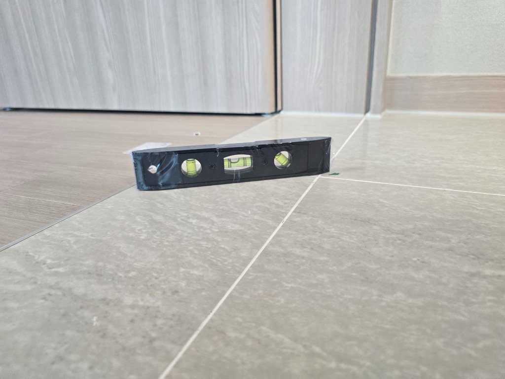 그리고 같은 방 입구라도 수평기 놓는곳마다 수평이 달라져요....하하