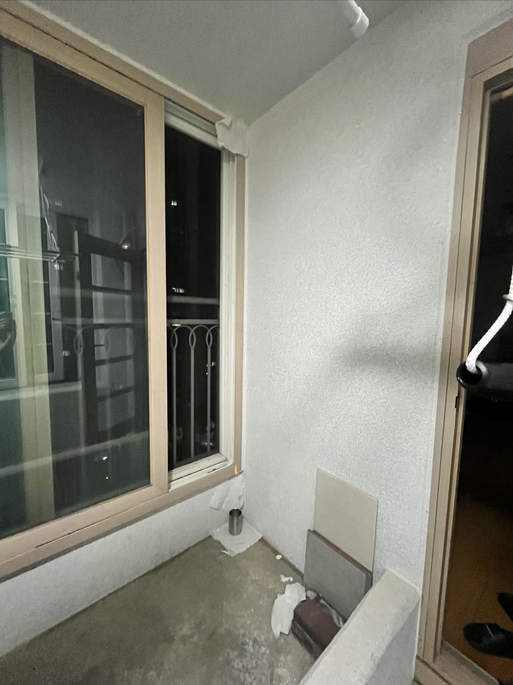 윗층 발코니 난간 아래쪽 옆벽면에 구멍같아 보이는 홈이 있는데