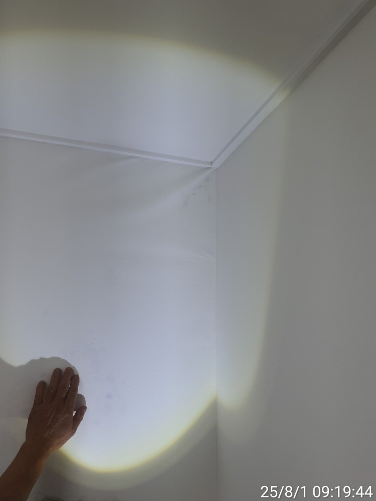 내려가서 살펴보니 욕실쪽 벽면의 벽지가 천장 모서리부터 젖어내려가는 상황이었습니다. 천장상태는 외관상 이상이 없었고 우리집 욕조쪽의 벽면모서리부터 누수가 번져가는 모양이었습니다.(1번사진참조).