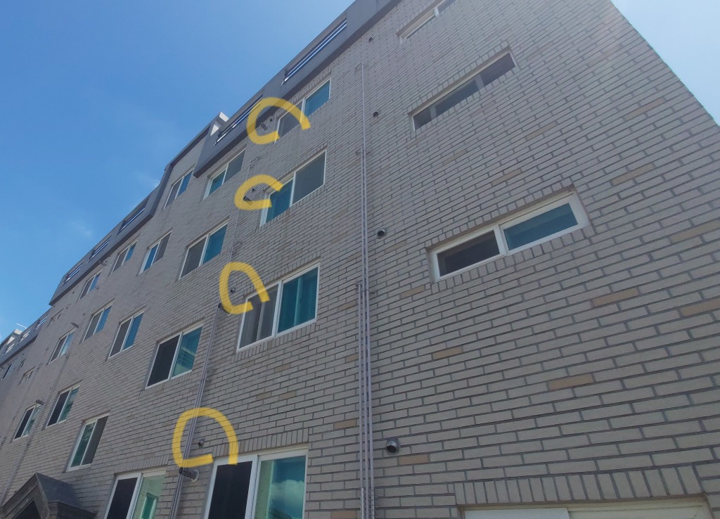 1. 사진에 동그라미 친 부분은 실내에서는 환풍 입구가 없는데 외부에는 환풍 출구가 있는 곳들입니다.