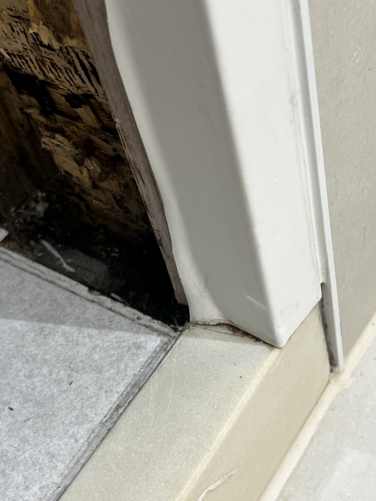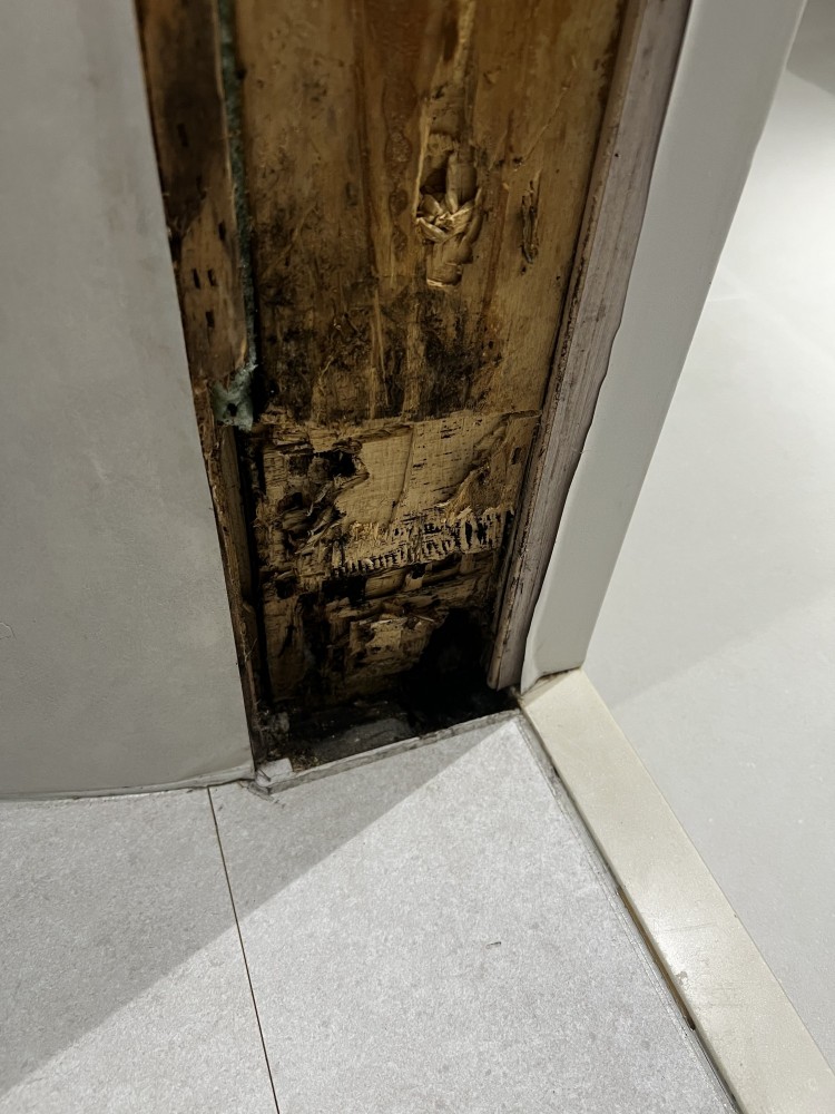 문틀 가장 하단부가 검게 보일정도로 썩었는데, 그 부분을 휴지로 닦고 하루종일 말려보아도 손으로 누르면 물이 찔 끔찔끔 나오는 상황입니다. 그리고 사진상 제가 반짤라놓 았는데, 반은 시멘트고 반은 나무인거같아요 시멘트로 꽉 차있을 줄 알았는데 저부분이 나무면 마루바닥도 한칸 뜯 어봐야 할까요? 또한 최초 공사 시 화장실 안 쪽 문지방 부 분도 실리콘으로 마감이 되있어야 정상 아닌가요?