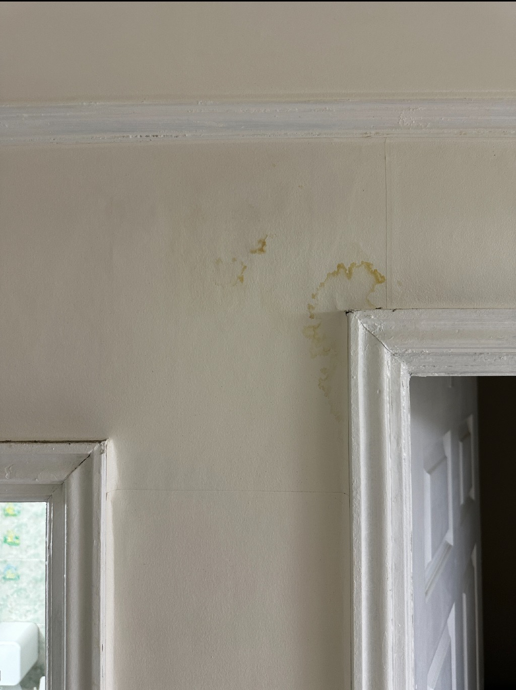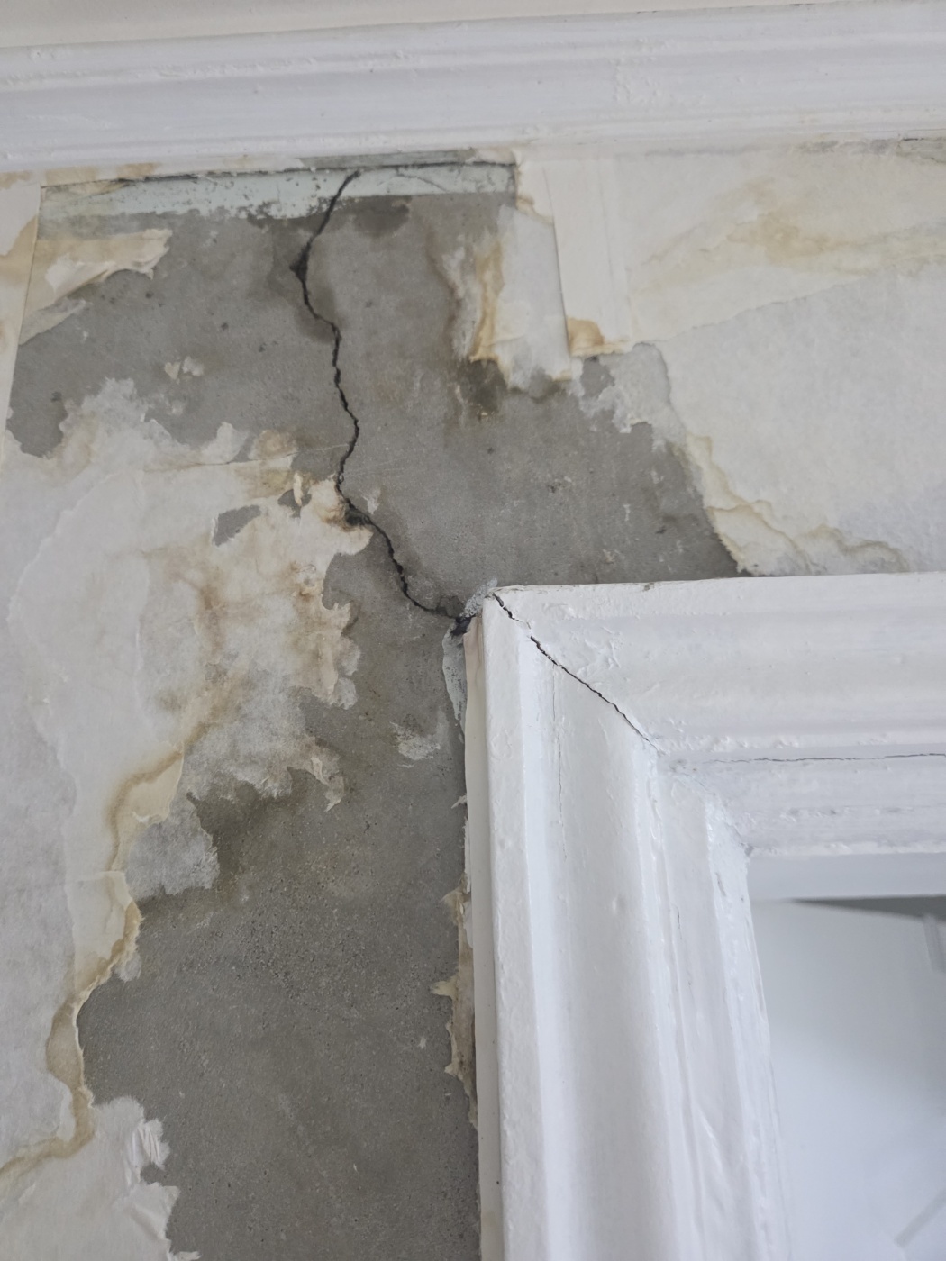 3. 수개월에 걸쳐 발생한 것으로 보이고, 최초 많이 드러나지 않아 넘어갔다가 점차 곰팡이? 가 번지고 확장하여 벽지를 뜯고 확인 중에 있습니다.