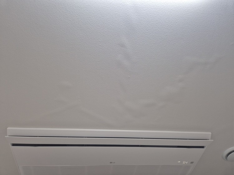처음 조치는 천장 내부 에어컨 높이가 높게 설치되었다고 높이를 낮추는 조치를 했고, 두번째는 결로 보강된 신품 판넬이 나왔다고 판넬 자체를 바꿔줬는데 증상은 그대로 나타났습니다