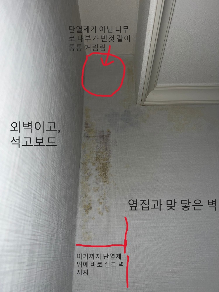 * 곰팡이가 핀 벽면은 옆집과 대칭 구조로 맞 닿아있어 외벽에 직접 노출된 부분은 아닙니다.