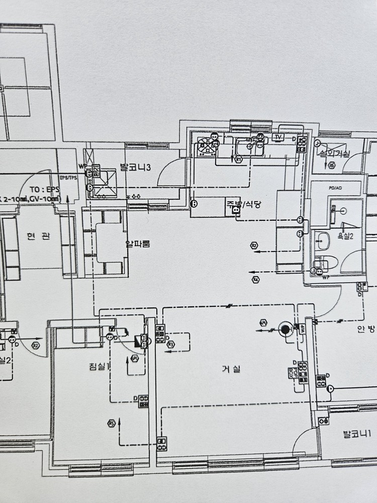거실에 붙은 작은방 통신함에서 주방 쪽 tv 선과 인터넷 선이 연결된 cd관에서 물이 나와서 가는 호스와 주사기로 물을 빼보니 제법 많이 나와서 싱크대 상부장을 뜯어보니 전선박스 안에 결로가 심합니다. 주방 등을 연결하는 전선박스에도 결로가 심하고 바로 아랫쪽이 주방 샷시인데 타일 위로 약간의 곰팡이 자국이 보입니다. 두 곳 다 물기 닦는다고 만져보니 벽쪽으로 찬기운이 많고 전선박스 연결하는 볼트에 물방울이 맺혀있고 녹이 나있습니다.