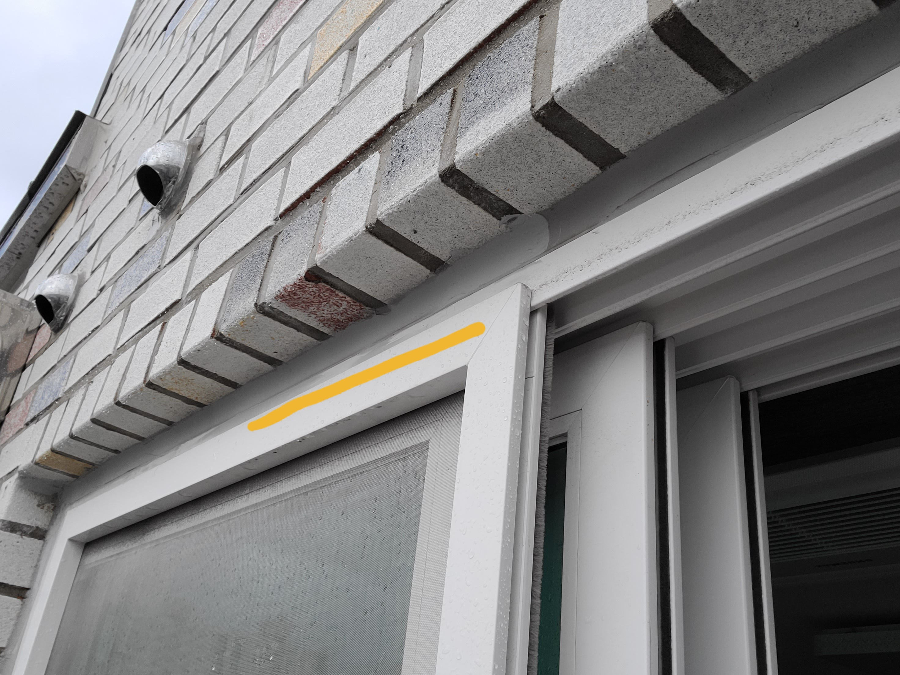 처음으로 거실 창틀 위 틈에서 빗물 누수가 있었습니다.