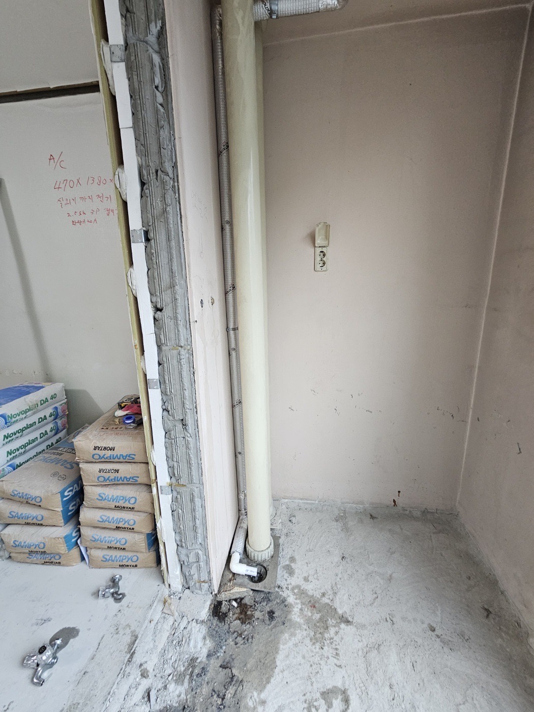 이미 우수관 오수관이 실내로 들어와버렸는고 단열 공사도 필요할 것 같습니다