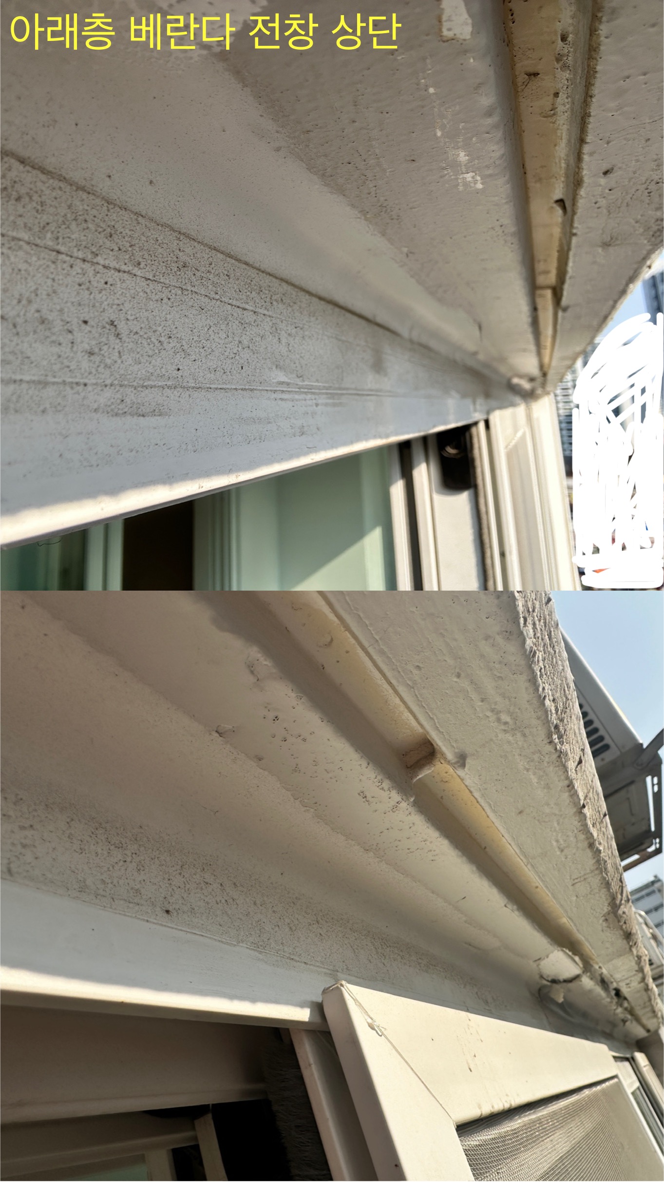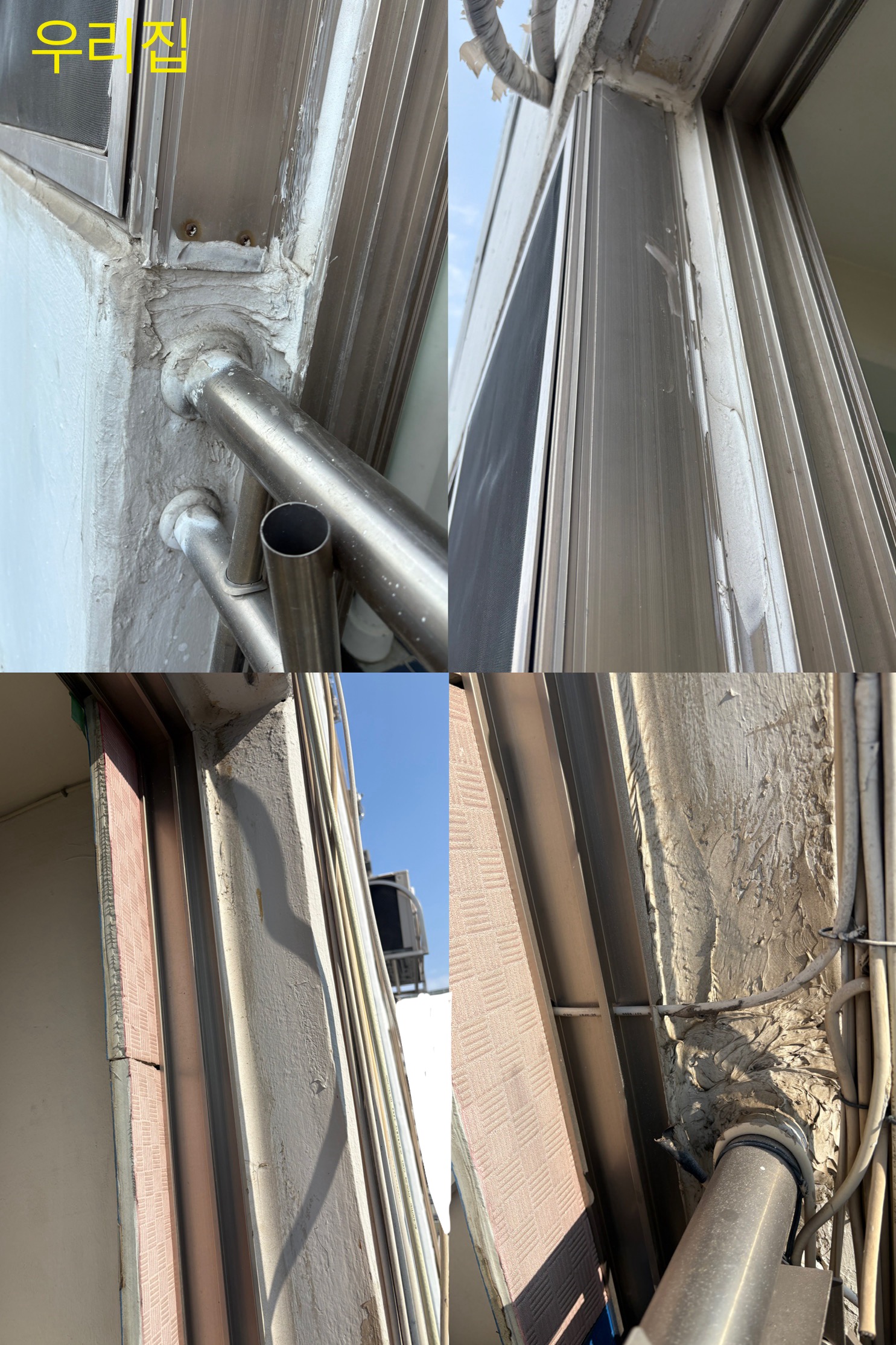 윗집과 아래층 샷시 상단 코킹은 다시 해야 할 상태로 보입니다.