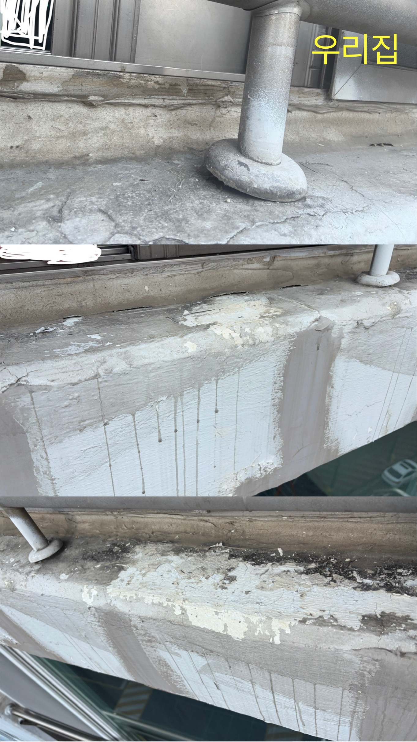 다만 리모델링 시 수성페인트로 재도장할 경우 아래층의 우수관 천장처럼 들뜸이 발생할 것 같습니다.