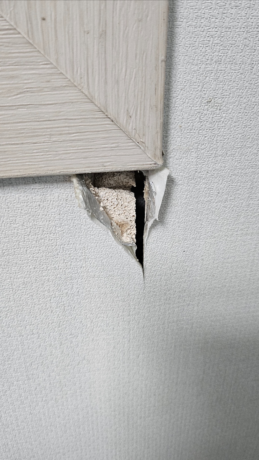 보수를 하신다면.. 벽지와 함께 기존 석고보드를 약 200mmx200mm 정도의 사각형으로 잘라내고 새로운 석고보드를 덧붙이는 방식으로 진행을 하게 됩니다.