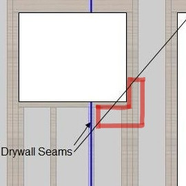 아래 사진 좌측과 같이 석고보드가 붙어있으면 창호 주변 벽지가 45도 방향으로 터지는 하자를 줄일 수 있습니다..