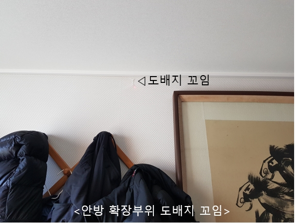 이질 재료 조인트 부분 벽지 하자 질문입니다!