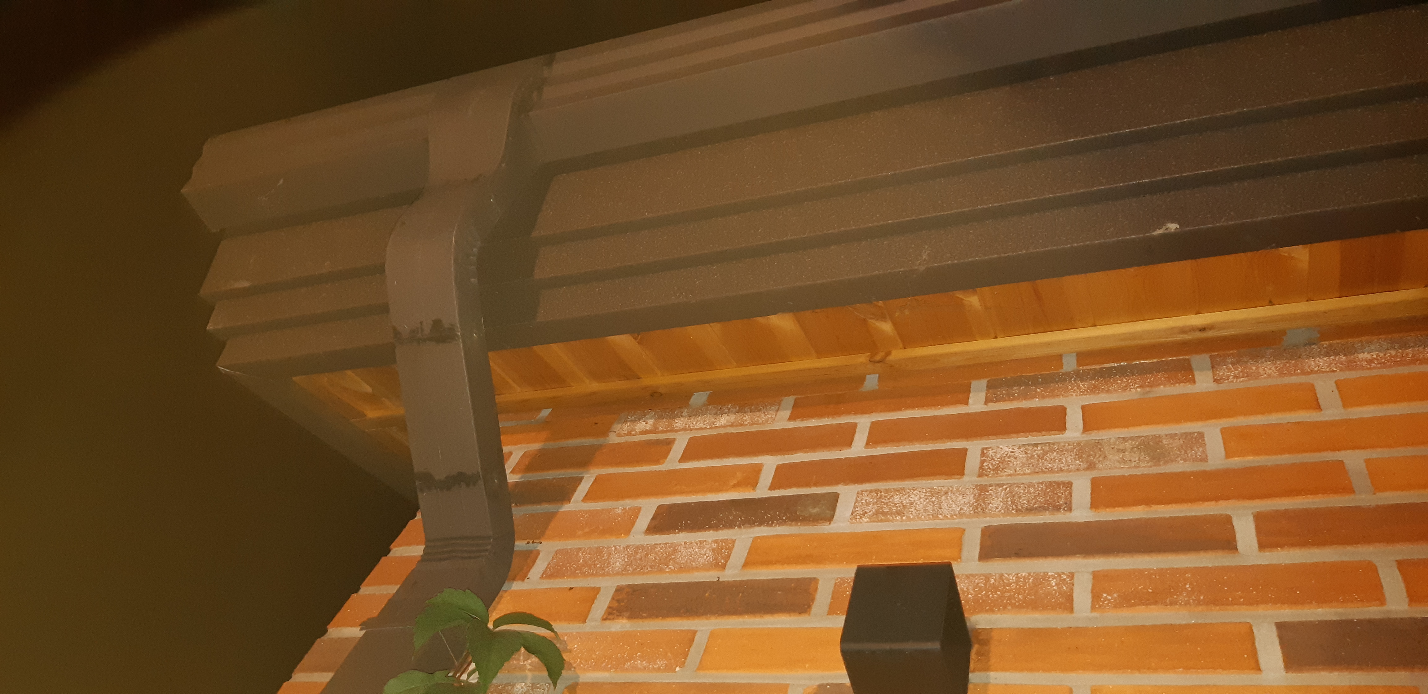 양측면과 후면은 아래는 치장벽돌 위는 스타코 마감입니다. 현재 주로 문제되는 부위는 후면쪽에서 물이 들어오는것 같습니다. 전면부도 이 물이 고랑 처럼 방통 아래쪽을타고 흘러가는 양상으로 파악됩니다.