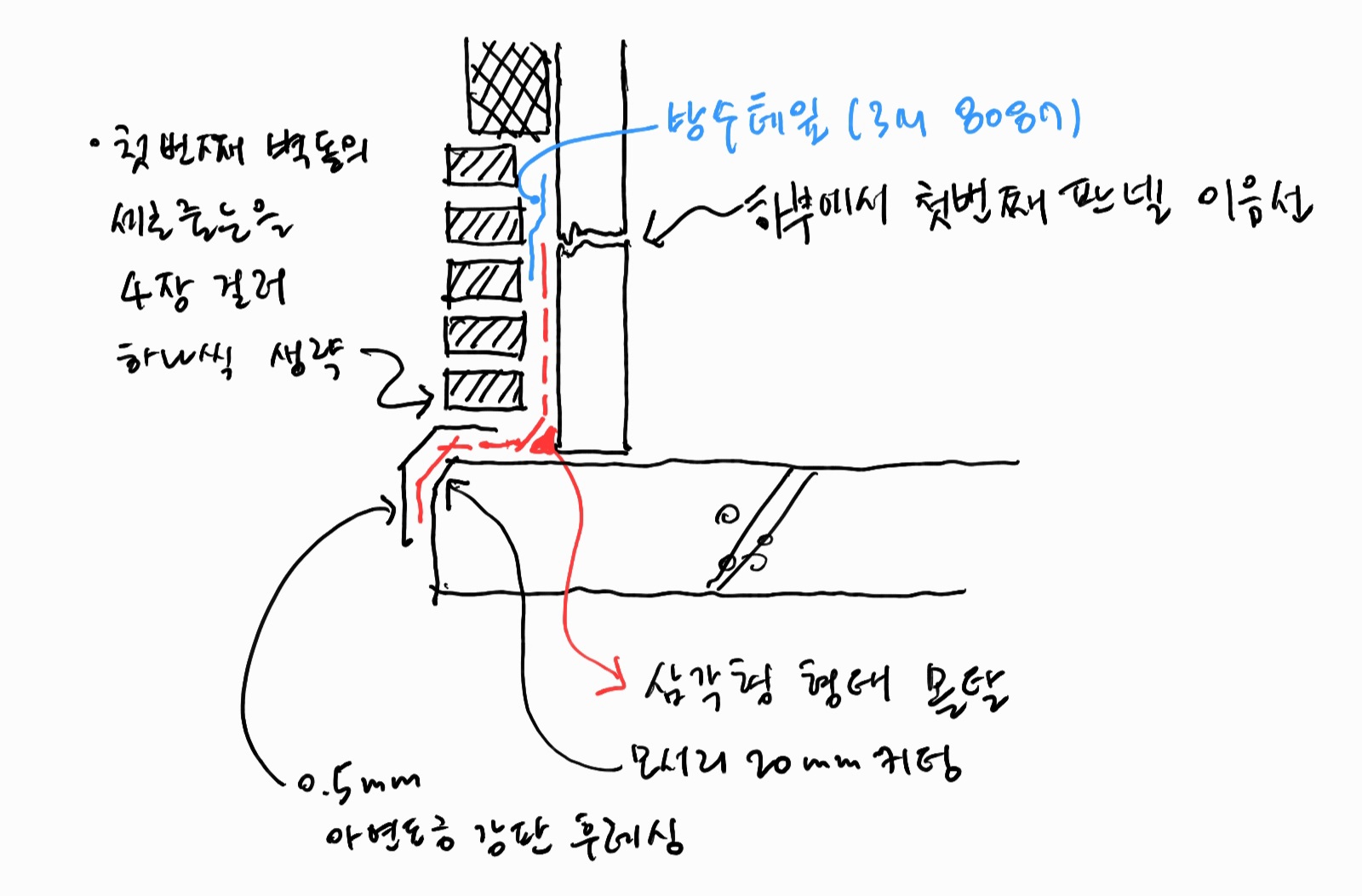 지금은 이음매에서만 들어 올 수 있으나, 장기적으로는 외벽 전체에서의 누수 가능성을 바탕에 두어야 하기 때문입니다.