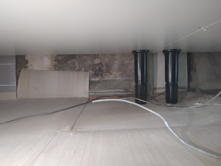 또 싱크대 밑 받침을 빼고 뒤를 보니까 사진처럼 곰팡이? 자국이 있었습니다.