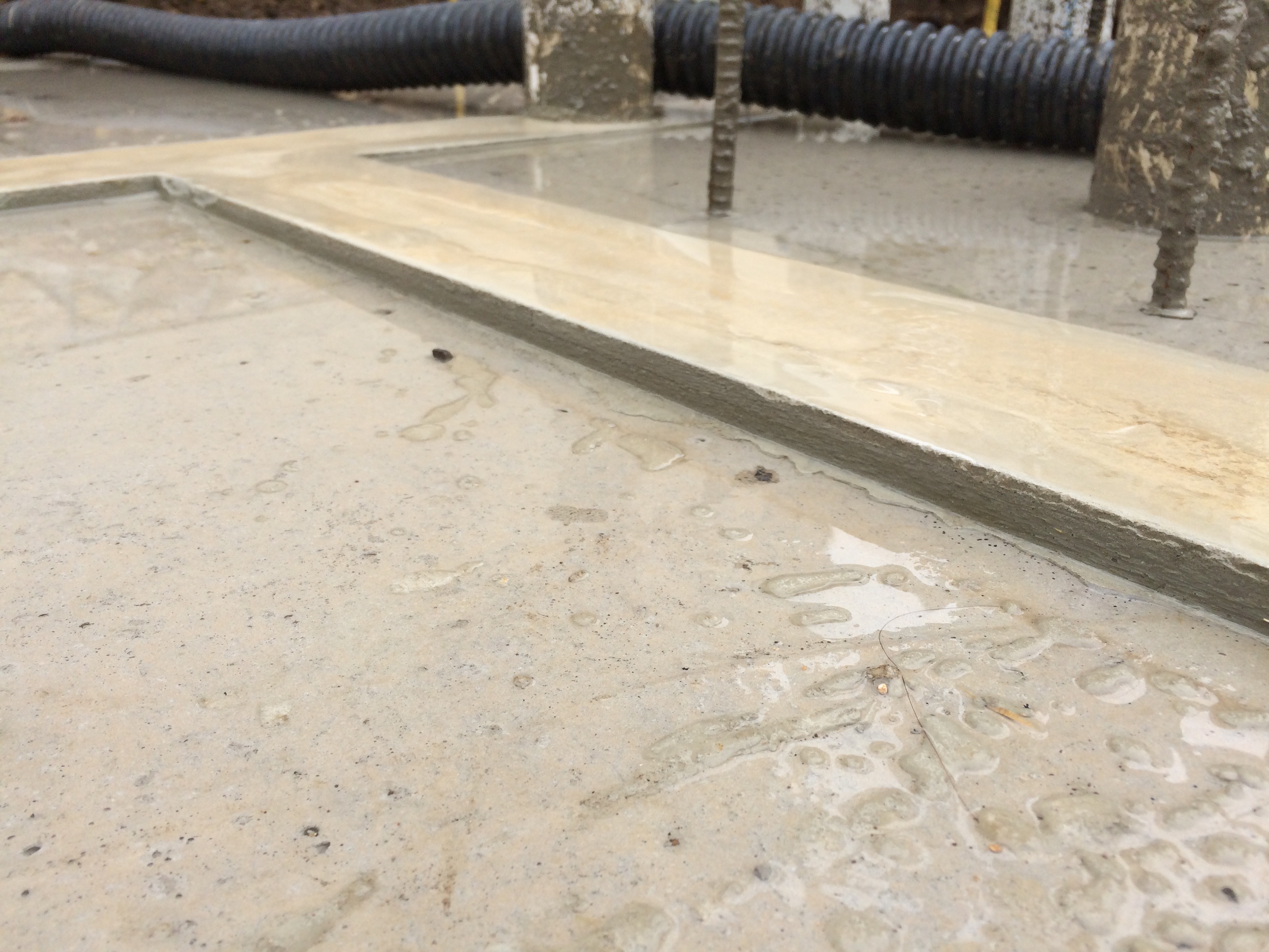 형틀을 현장 제작해서 상부면의 레벨을 정확히 맞추고 꽉채워 타설합니다.