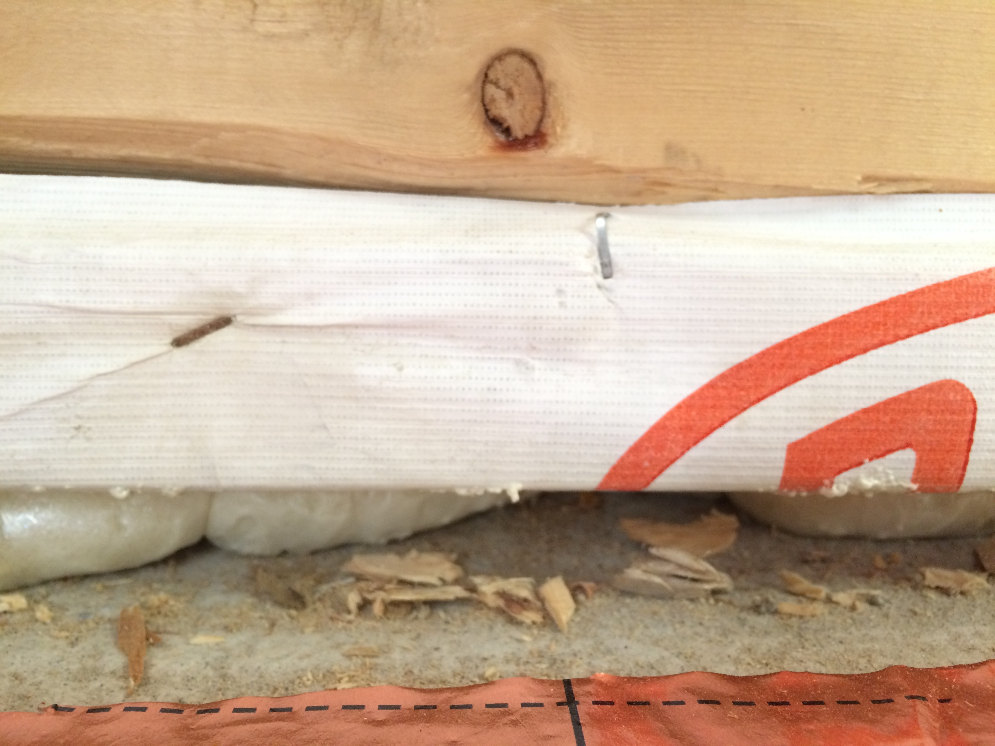 차라리 물을 내뱉는 타이벡이 더 낫다고 판단하여 방부목-타이벡 이중으로 침수에 대비하였습니다.