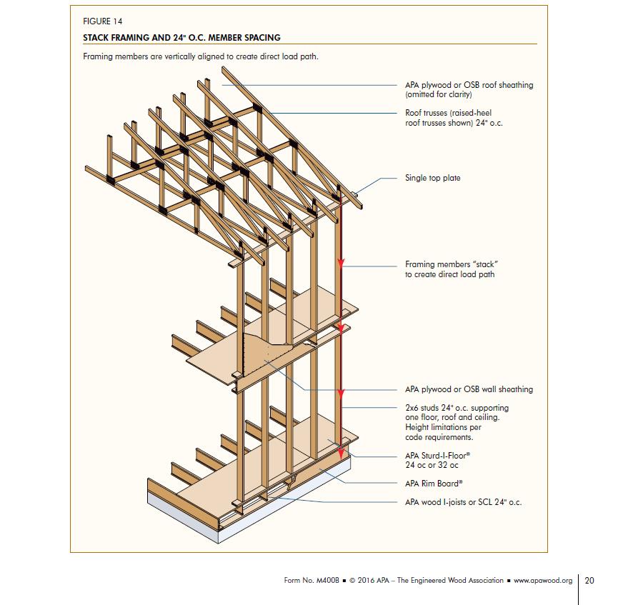 위의 진보된 골조 방식을 응용한 것이 SIP패널이 아닌가 합니다. 진보된 골조의 수직하중은 스터드 24" 간격, SIP패널의 수직하중은 스터드 48"간격에 양면 OSB 12.5mm를 못으로 고정시켜 박스형태로 만들어 스터드와 합판이 같이 수직하중을 받을 수 있도록 한 것 같습니다. 이렇게 박스형태의 일때는 스터드에 하중이 전달되기 보다는 합판면에 하중이 플레이트로 전달되어 다시 토대로 전달되어질 것 같습니다. SIP패널(경량목구조 포함)은 쐐기 보다는 전체적인 토대면의 하중을 지탱할 수 있는 방법으로 시공되어져야 할 것 같습니다.