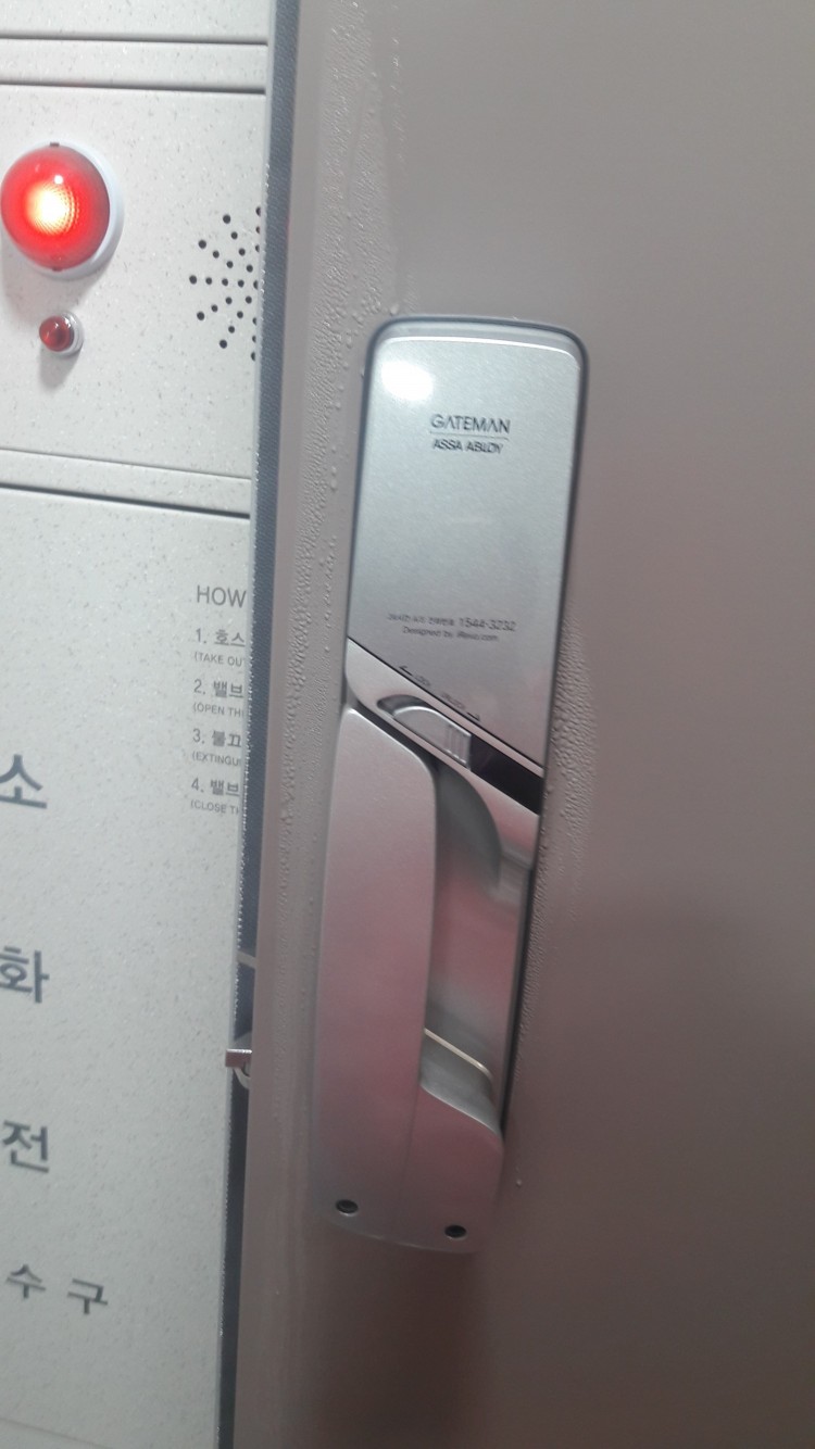 네... 준공 된지 얼마가 지난 아파트인지 모르겠으나, 현재 이 상황을 가장 쉽게 벗어 나는 것은 당분간 중문을 열고 계시는 것이 유일 할 것 같습니다.