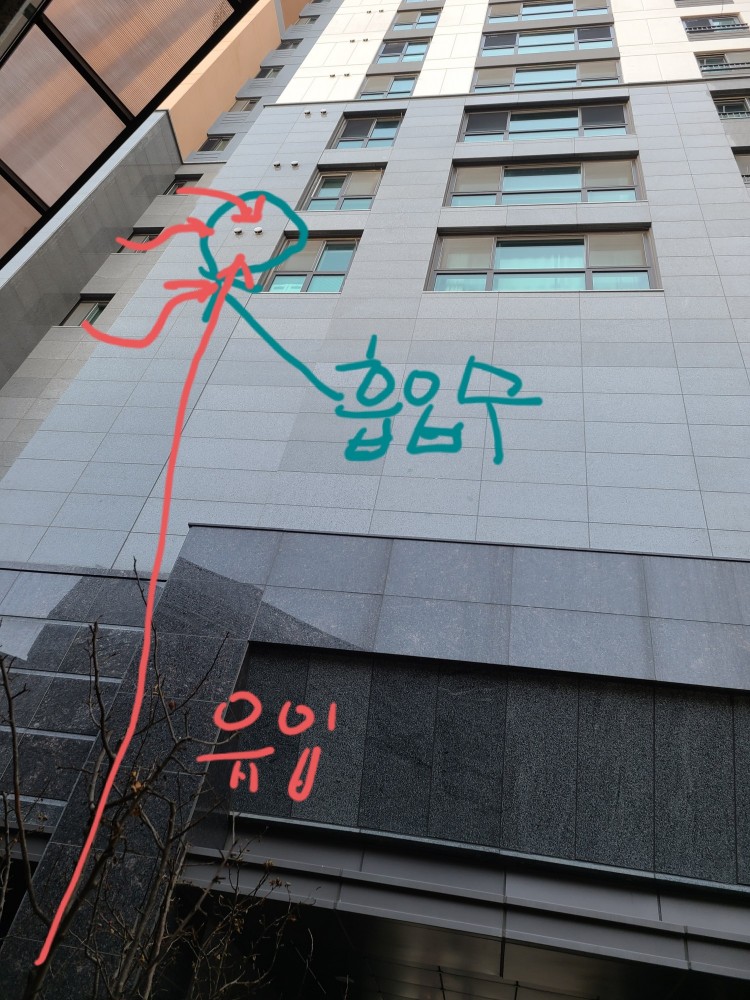 저희 동 특징은 바람이 심하고, 흡연자들 담배피우는 장소 바로 뒤가 상가실외기 있는곳 이라서 그 실외기가 담배냄새를 밀어내고, 다음으로 ㄷ 자 형태의 바람길을 타고 올라와 저희세대 전열교환기 흡입구로 들어온다고 추정하고 있습니다.