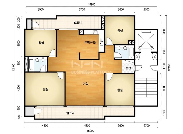 저희집은 평면도와 반대되기는 하지만 좌우대칭을 했을시 현관에서 아래에 있는 방에서는 크게 들리지만 가장 안쪽에 있는큰방에서는 소리가 크게 들리지는 않습니다