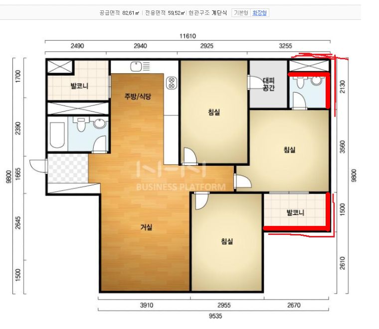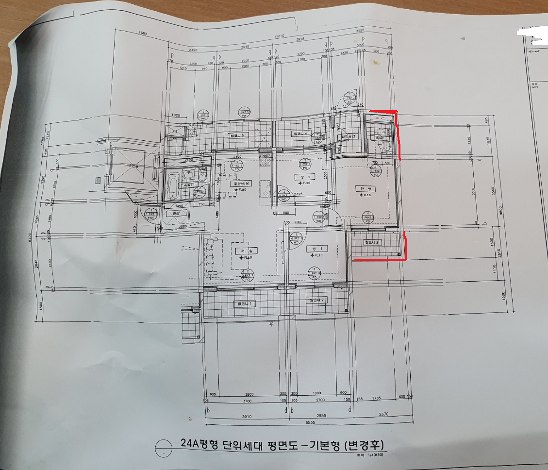 준공도면입니다. 빨간색 표시한 부분이 결로가 발생하는 곳입니다. 공사 방향에 대해서 조언을 주시면 정말 감사하겠습니다 :)