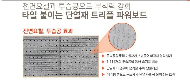 - 투습공 사이로 접착제가 스며들어 타일 부착을 강화시키고