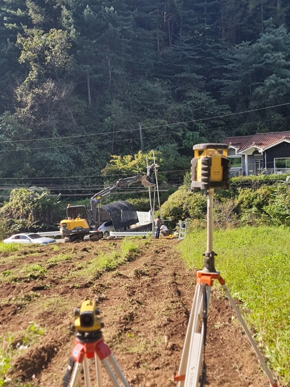 광파기로 우아한 측량을 해야겠지만, 1,000평 넘는 그것도 6m 레벨 차이 땅의 각종 기준선을 전형적인 방식으로 하루만에 작업한다는 자체가 쉽지 않은 일입니다.